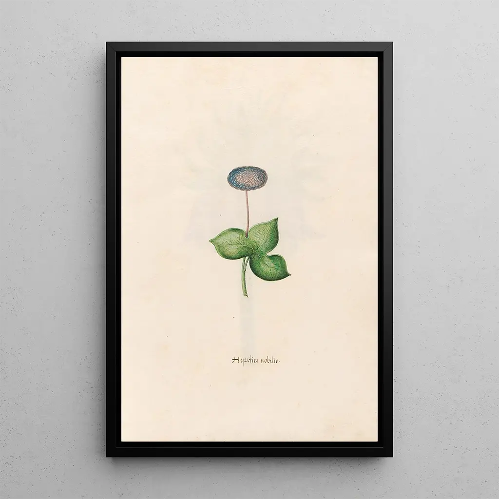 La obra "Hépatica noble" de Magdalena Rosina Funck nos sumerge en un universo botánico delicado y fascinante. Esta impresión artística destaca matices de verde y azul, evocando la frescura de los sotobosques. La técnica de acuarela, utilizada con finura, permite capturar la ligereza y la transparencia de las hojas, creando a la vez una atmósfera relajante. Los detalles minuciosos y los juegos de luz dan vida a esta planta, invitando al espectador a una contemplación atenta y respetuosa de la naturaleza.