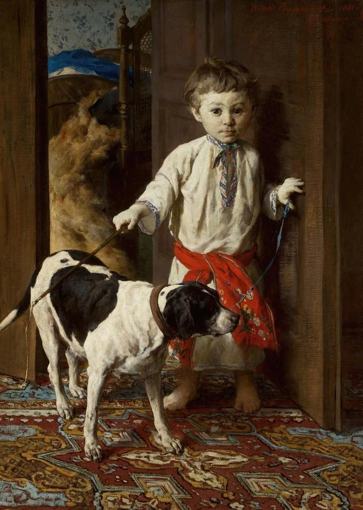 Cuadro Hijo del artista con un perro - Witold Pruszkowski | Impresión artística