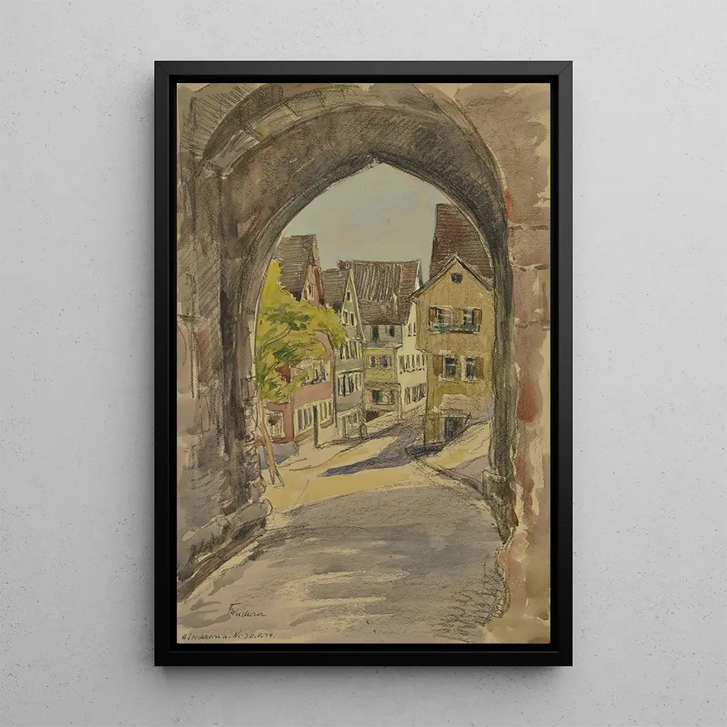 En "Hirschhorn en el Neckar", Fritz Wucherer nos transporta al corazón de un paisaje tranquilizador, donde la naturaleza se revela en toda su esplendor. La tela, bañada en colores suaves y luminosos, evoca una atmósfera de tranquilidad. Las tonalidades de verde y azul se mezclan armoniosamente, mientras que los toques de luz crean un juego de sombras delicado en las orillas del Neckar. La composición, a la vez equilibrada y dinámica, invita al espectador a sumergirse en esta escena idílica, donde el tiempo parece suspendido, ofreciendo una verdadera invitación a la contemplación.