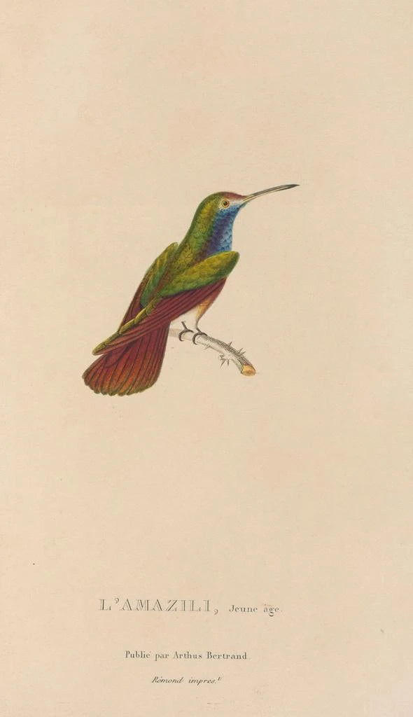 René Primevère Lesson, naturalista y ornitólogo del siglo XIX, desempeñó un papel fundamental en el estudio de las aves. Activo durante el período romántico, supo combinar ciencia y arte, ofreciendo representaciones precisas y estéticas de la fauna aviar. Influenciado por los descubrimientos de los exploradores de su tiempo, Lesson contribuyó a enriquecer el conocimiento sobre las especies exóticas. Sus obras, incluyendo "Historia natural de los colibríes Pl12", reflejan su compromiso de documentar la biodiversidad mientras celebra la belleza de la naturaleza. Su legado perdura, inspirando a artistas y científicos a través de los siglos.