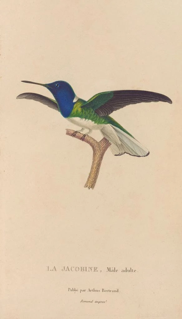 René Primevère Lesson, naturalista e ilustrador del siglo XIX, desempeñó un papel fundamental en la documentación de las especies aviares. Su trabajo se inscribe en el movimiento de la ornitología, donde la precisión científica se combina con la estética artística. Influenciado por los descubrimientos de su época y por viajes alrededor del mundo, supo capturar la esencia misma de los pájaros, especialmente aquellos de regiones tropicales. Su obra "Histoire naturelle de los colibríes" es un testimonio de su compromiso por representar la biodiversidad con rigor y belleza, marcando así la historia del arte naturalista.