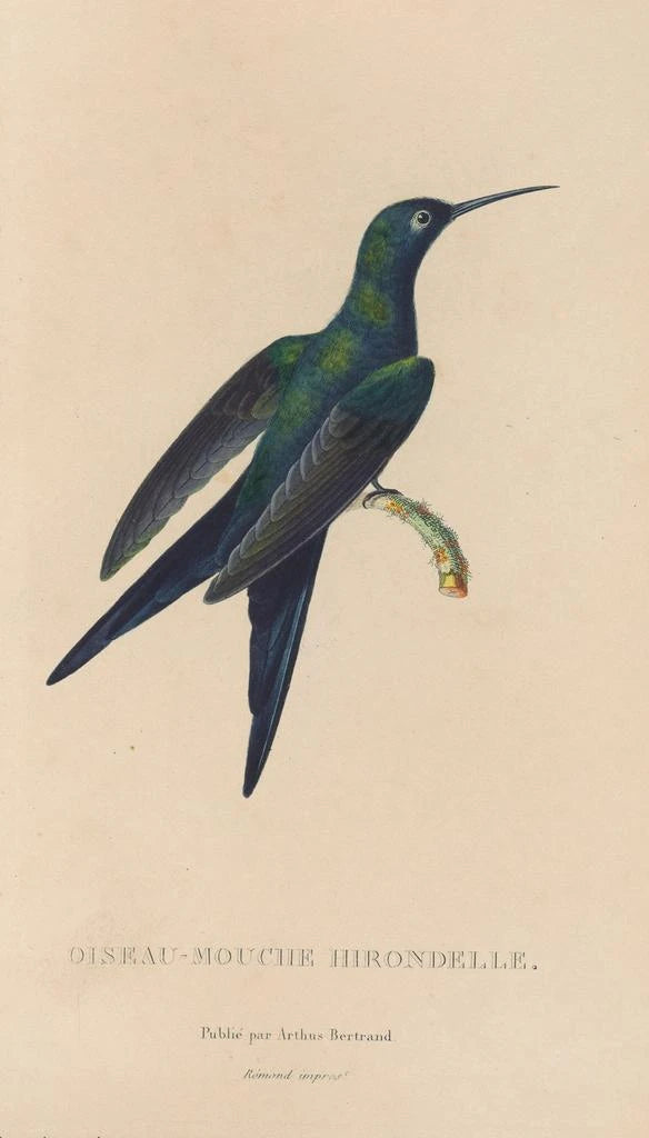 René Primevère Lesson, naturalista e ilustrador del siglo XIX, marcó su época con sus contribuciones a la ornithología y al arte. Influenciado por los descubrimientos científicos de su tiempo, supo combinar rigor científico y sensibilidad artística. Sus obras, incluida la impresión artística Histoire naturelle des oiseaux-mouches Pl25, reflejan su compromiso de representar la fauna con una precisión inigualable. Lesson viajó por todo el mundo, inspirándose en paisajes exóticos y especies raras que encontró. Su trabajo no solo enriqueció el campo de la ilustración natural, sino que también ayudó a sensibilizar al público sobre la belleza y la diversidad de las aves.
