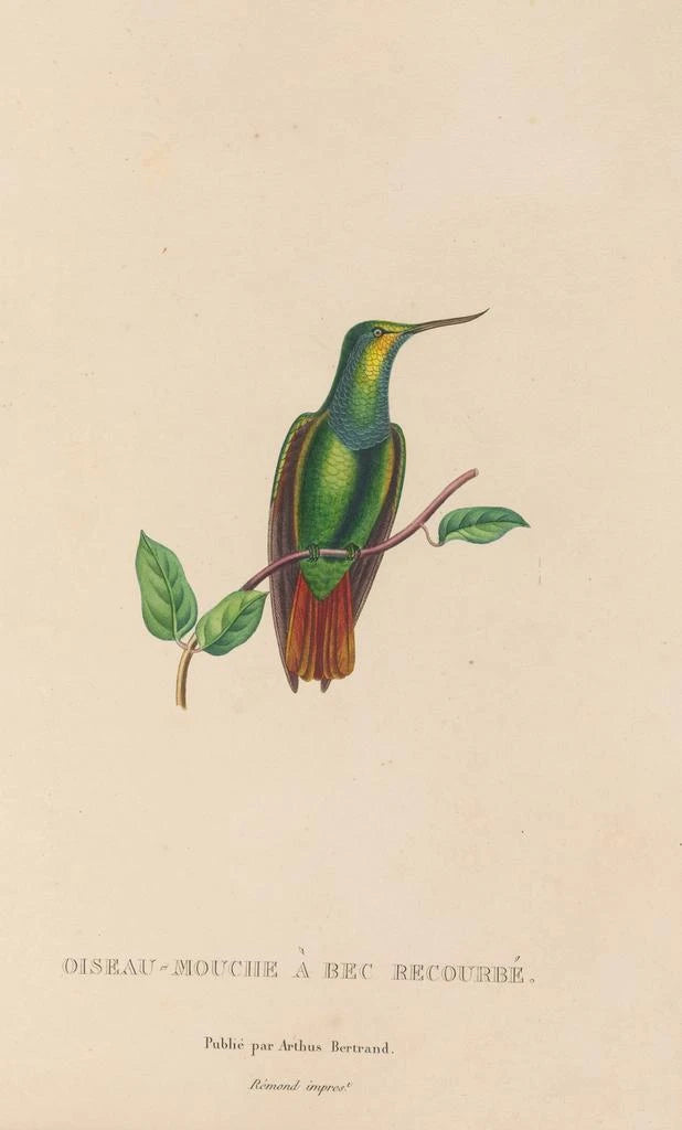 René Primevère Lesson, naturalista y ornitólogo del siglo XIX, marcó su época con sus contribuciones al estudio de las aves. Su obra se sitúa en la encrucijada del arte y la ciencia, ilustrando con precisión las especies que observaba. Influenciado por los descubrimientos de su tiempo y por las exploraciones botánicas, Lesson supo combinar estética y rigor científico. Sus impresiones artísticas, como Historia natural de los colibríes Pl37, reflejan su compromiso con la conservación de la naturaleza y su pasión por la belleza aviar. Su legado perdura, inspirando a artistas y científicos a través de los siglos.