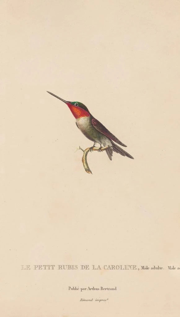 René Primevère Lesson, naturalista e ilustrador del siglo XIX, supo combinar ciencia y arte en sus obras. Activo durante un período en el que la ornitología experimentaba un auge considerable, fue influenciado por las exploraciones científicas de su tiempo. Sus ilustraciones, incluyendo "Histoire naturelle des oiseaux-mouches Pl48", son no solo representaciones artísticas, sino también valiosos documentos científicos. Lesson contribuyó al conocimiento de las especies aviares, y su trabajo ha sido reconocido por su rigor y estética. Sus obras son hoy consideradas referencias en el campo de la ilustración ornitológica.
