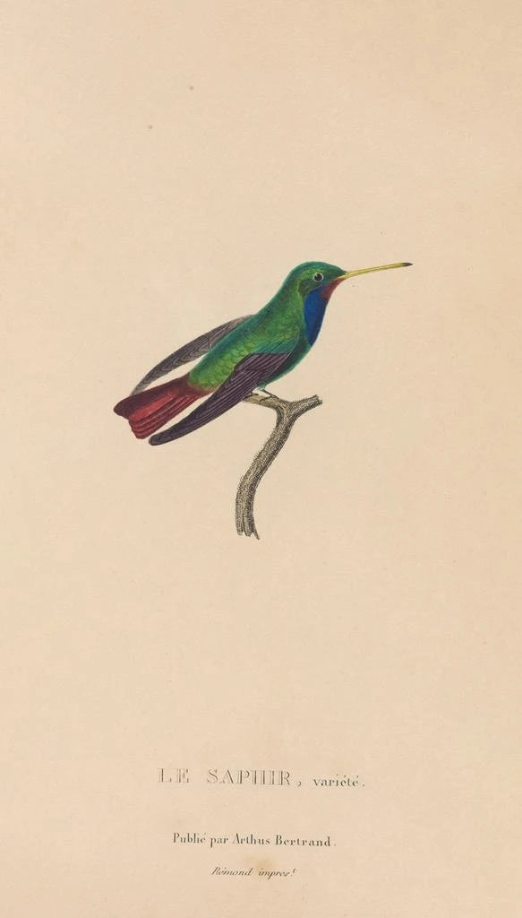 René Primevère Lesson, naturalista y ornitólogo del siglo XIX, marcó su época con sus estudios profundos sobre los pájaros. Su trabajo se inscribe en el movimiento del naturalismo, donde la observación minuciosa de la fauna y la flora era primordial. Influenciado por las exploraciones científicas de su tiempo, supo combinar arte y ciencia, ofreciendo representaciones fieles de la biodiversidad. Sus obras, incluyendo la reproducción Histoire naturelle des oiseaux-mouches Pl58, testimonian su compromiso de documentar la naturaleza, aportando a la vez un toque artístico que las hace atemporales.