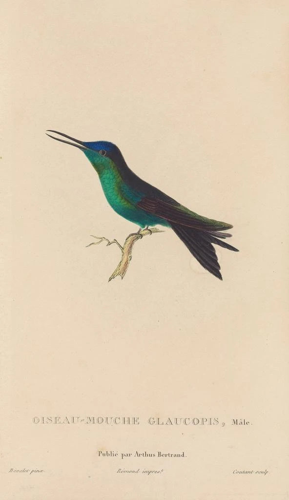 René Primevère Lesson, figura emblemática del siglo XIX, supo combinar ciencia y arte en sus estudios ornitológicos. Naturalista de renombre, dedicó su vida a la observación y documentación de aves, contribuyendo así al conocimiento de la biodiversidad. Su enfoque meticuloso y su sentido del detalle se reflejan en obras como la impresión artística Histoire naturelle des oiseaux-mouches Pl59. Influenciado por los descubrimientos de su época, supo capturar la esencia de las especies que representaba, haciendo de sus creaciones referencias en el campo de la ornitología artística.