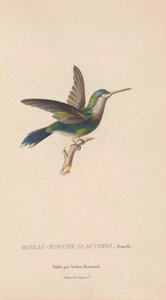 René Primevère Lesson, naturalista e ilustrador del siglo XIX, supo combinar ciencia y arte con brillantez. Evolucionando en una época en la que el estudio de las especies estaba en pleno auge, fue influenciado por los descubrimientos de su tiempo y por los viajes de exploración que ampliaron los horizontes del conocimiento. Sus obras, especialmente las dedicadas a las aves, testimonian una rigurosidad científica combinada con una sensibilidad artística. Lesson contribuyó a la documentación de especies exóticas, convirtiéndose en una figura imprescindible en el campo de la ornitología. Sus ilustraciones, como la de Historia natural de los colibríes Pl60, se han convertido en referencias para los amantes del arte y de la naturaleza.