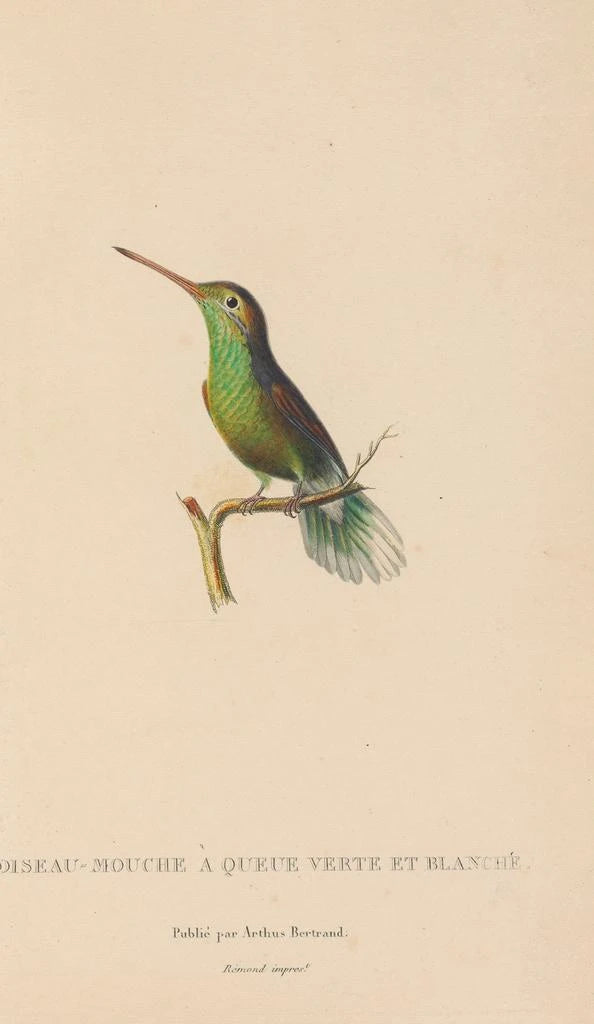 René Primevère Lesson, naturalista e ilustrador francés, marcó el siglo XIX con sus contribuciones a la ornitología y al arte. Influenciado por las exploraciones científicas de su época, supo capturar la esencia de las especies aviares con una precisión notable. Sus ilustraciones, incluida la historia natural de los colibríes Pl61, son fruto de una observación minuciosa y de una pasión por la naturaleza. Lesson desempeñó un papel clave en la sensibilización a la biodiversidad, y sus obras continúan inspirando a los aficionados al arte y a las ciencias naturales. Su legado perdura a través de sus ilustraciones, que combinan rigor científico y sensibilidad artística.