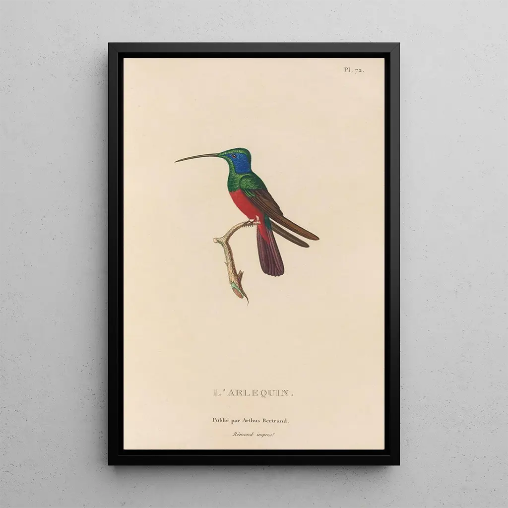 La impresión artística "Histoire naturelle des oiseaux-mouches Pl73" de René Primevère Lesson nos sumerge en un universo vibrante donde la naturaleza se revela con brillo. Los colores vibrantes de los plumajes de los colibríes, que van desde el verde esmeralda hasta el azul cobalto, cautivan la mirada y evocan una sensación de ligereza. La técnica de grabado utilizada por Lesson permite capturar cada detalle con una precisión notable, resaltando la delicadeza de las plumas y la gracia de las poses de los pájaros. Este lienzo invita a una contemplación atenta, revelando la belleza efímera de estas criaturas fascinantes, verdaderas joyas de la biodiversidad.