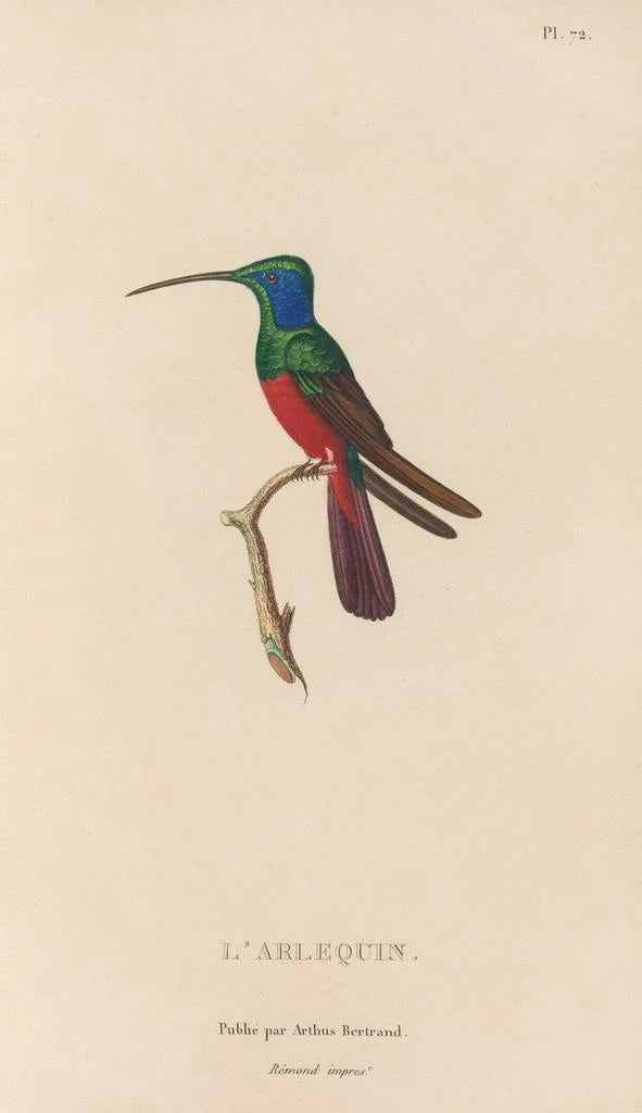 René Primevère Lesson, naturalista y ornitólogo del siglo XIX, supo fusionar ciencia y arte en sus obras. Evolucionando en una época en la que el estudio de las aves adquiría una nueva dimensión, fue influenciado por los descubrimientos de sus contemporáneos y por las exploraciones científicas. Su trabajo, a menudo asociado al movimiento romántico, se distingue por su capacidad para capturar la belleza de la naturaleza mientras proporciona información precisa sobre las especies. Lesson dejó un legado duradero en el campo de la ilustración ornitológica, y sus obras siguen inspirando a los amantes del arte y de la naturaleza.