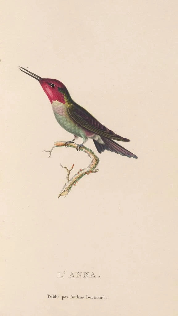 René Primevère Lesson, naturalista y ornitólogo del siglo XIX, marcó su época con sus contribuciones al estudio de las aves. Influenciado por los descubrimientos científicos de su tiempo, supo combinar rigor científico y sensibilidad artística. Sus obras, incluyendo "Histoire naturelle de los colibríes Pl75", reflejan una época en la que la exploración de especies exóticas fascinaba a las mentes curiosas. Como miembro del Instituto de Francia, Lesson desempeñó un papel clave en la documentación de especies aviares, convirtiéndose en una figura imprescindible de la ornitología. Su trabajo no solo enriqueció el conocimiento científico, sino que también inspiró a numerosos artistas y naturalistas.