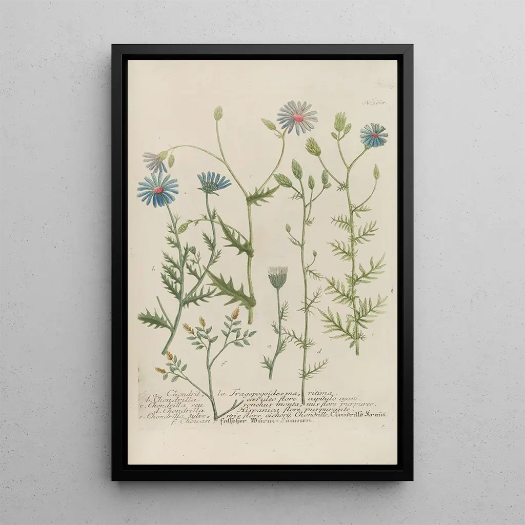 La impresión artística de Phytanthoza iconographia Pl091 nos transporta a un mundo donde cada planta es iluminada con una delicadeza inigualable. Los tonos vibrantes y los detalles exquisitos de las ilustraciones revelan la riqueza de la flora, invitando a una exploración visual fascinante. La técnica de grabado de Johann Wilhelm Weinmann permite capturar la belleza de las formas y las texturas, creando una atmósfera a la vez científica y artística. Este cuadro es una verdadera celebración de la naturaleza, un homenaje a la diversidad vegetal que nos rodea.