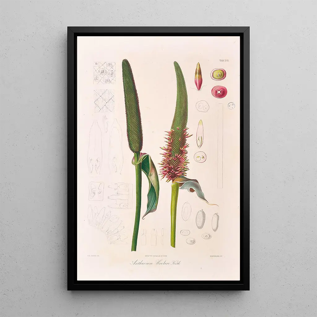 La impresión artística de "Icones Aroidearum Pl17" es un añadido decorativo que enriquecerá su espacio vital, ya sea en una oficina, un salón o un dormitorio. La calidad de impresión garantiza una fidelidad en los colores y detalles de la obra original, ofreciendo así una pieza de arte cautivadora. Al integrar esta obra en su decoración, aporta un toque de naturaleza y elegancia a su interior. Además, su estética única y su historia botánica la convierten en un tema de interés, despertando la curiosidad y la admiración de sus invitados.
