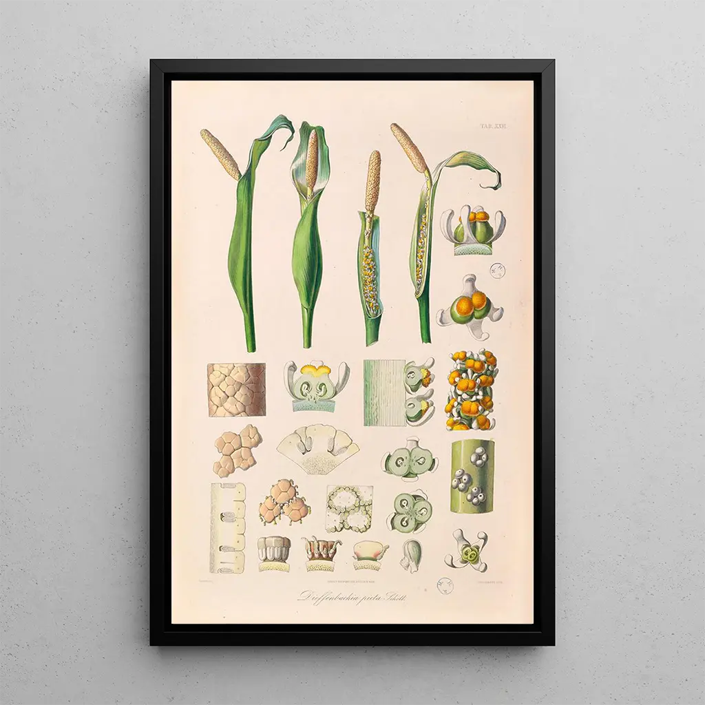 La impresión artística de "Icones Aroidearum Pl26" es una opción ideal para quienes desean embellecer su espacio vital. Ya sea en una sala de estar, una oficina o un dormitorio, este lienzo aporta un toque de naturaleza y sofisticación. Su calidad de impresión garantiza una fidelidad a los detalles y colores de la obra original, creando una atmósfera cálida y acogedora. Al integrar este cuadro en tu decoración, no solo añades un elemento estético, sino también una pieza cargada de historia y ciencia, que sabrá captar la atención de tus invitados.