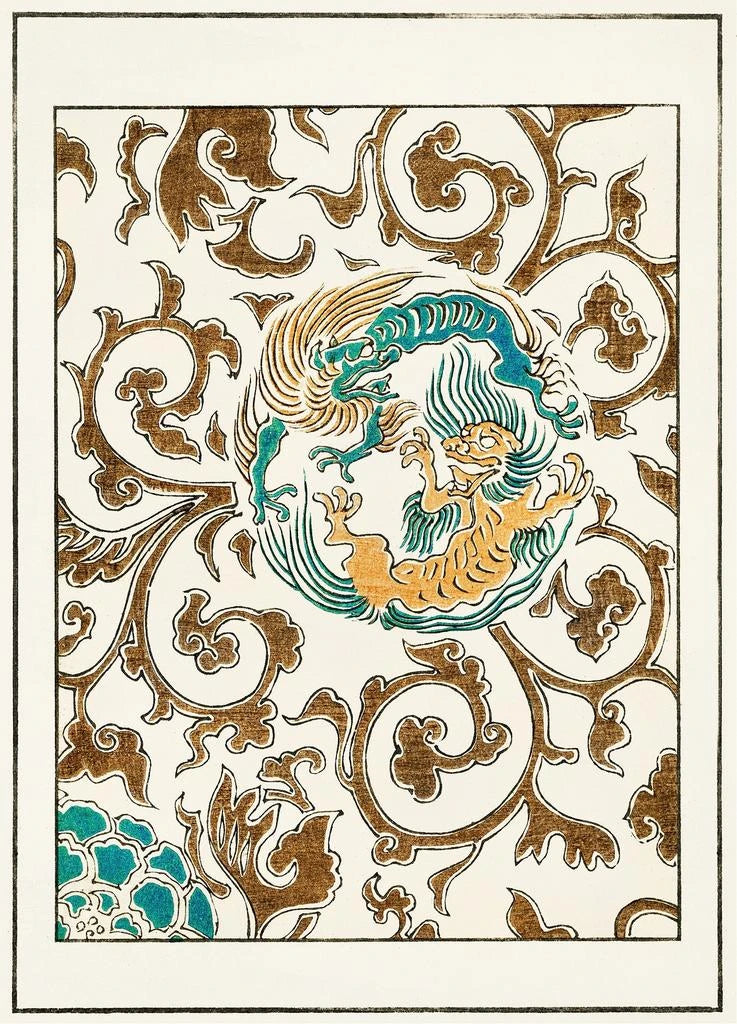 La ilustración de motivo floral y espiritual de Watanabe Seitei es una verdadera oda a la belleza de la naturaleza. Los colores vibrantes y las formas delicadas se entrelazan para crear un cuadro vivo que evoca la armonía y la serenidad. Cada flor, cada hoja está representada con una precisión que testimonia el talento excepcional del artista. La composición, a la vez rica y equilibrada, invita al espectador a sumergirse en un universo donde la naturaleza y el espíritu se encuentran, ofreciendo una experiencia visual cautivadora y tranquilizadora.