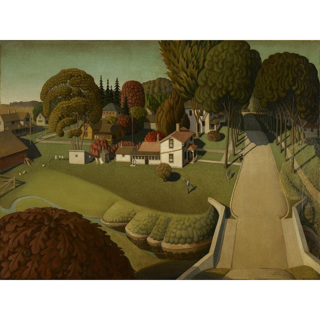 La obra El lugar de nacimiento de Herbert Hoover, West Branch, Iowa (1931) por Grant Wood es parte de un contexto histórico particular. Esta obra maestra fue creada en un momento en que el mundo del arte conocía a los trastornos profundos, ofreciendo así una perspectiva única sobre la América rural. Wood, conocida por su enfoque innovador del impresionismo, utiliza colores vibrantes y un estilo distintivo que captura la esencia del paisaje estadounidense.