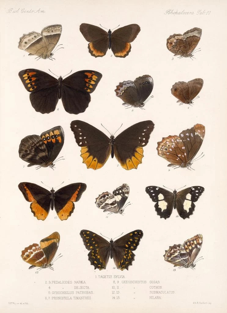 Frederick DuCane Godman, naturalista e ilustrador del siglo XIX, desempeñó un papel esencial en el estudio de los insectos, en particular de las mariposas. Su trabajo se inscribe en el movimiento victoriano, donde la ciencia y el arte se unen para celebrar la naturaleza. Influenciado por las exploraciones científicas de su época, Godman colaboró con otros naturalistas para documentar la biodiversidad. Sus ilustraciones, como las de la serie Insecta Lepidoptera, son no solo obras de arte, sino también contribuciones significativas a la ciencia, testimoniando la importancia de la observación minuciosa y la representación fiel de las especies.