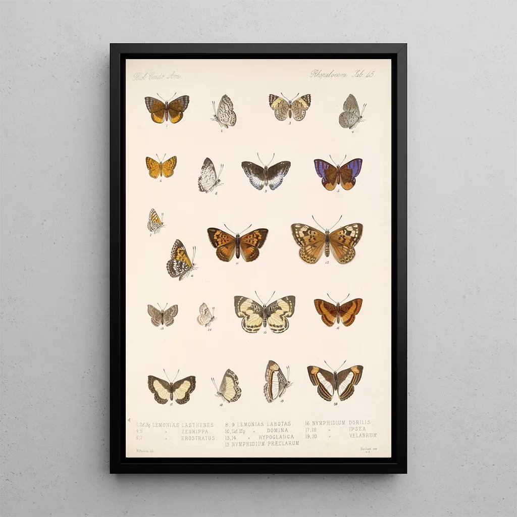 La impresión artística Insecta Lepidoptera Rhopalocera Pl 046 revela una paleta de colores vibrantes y patrones fascinantes, ilustrando la increíble diversidad de las mariposas. Cada detalle está cuidadosamente representado, desde las alas delicadas hasta los matices sutiles que evocan la luz del día. Esta obra, por su enfoque naturalista, invita a una contemplación atenta, permitiendo apreciar la belleza efímera de estas criaturas. La atmósfera que emana de esta obra es a la vez serena e inspiradora, un verdadero homenaje a la naturaleza.