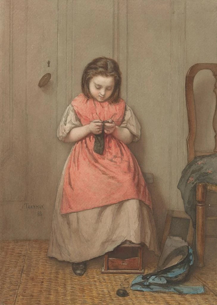 Cuadro interior con niña tejiendo - Jacob Taanman | Impresión artística