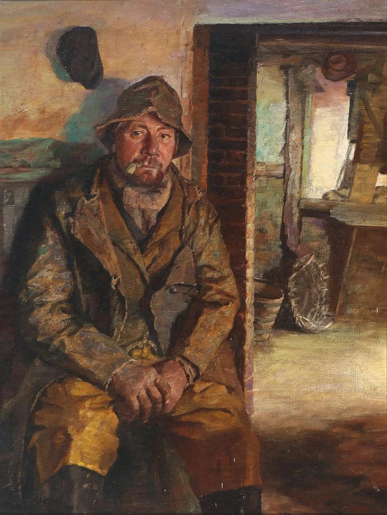 Interior con un pescador - Johan Christopher Schlichtkrull