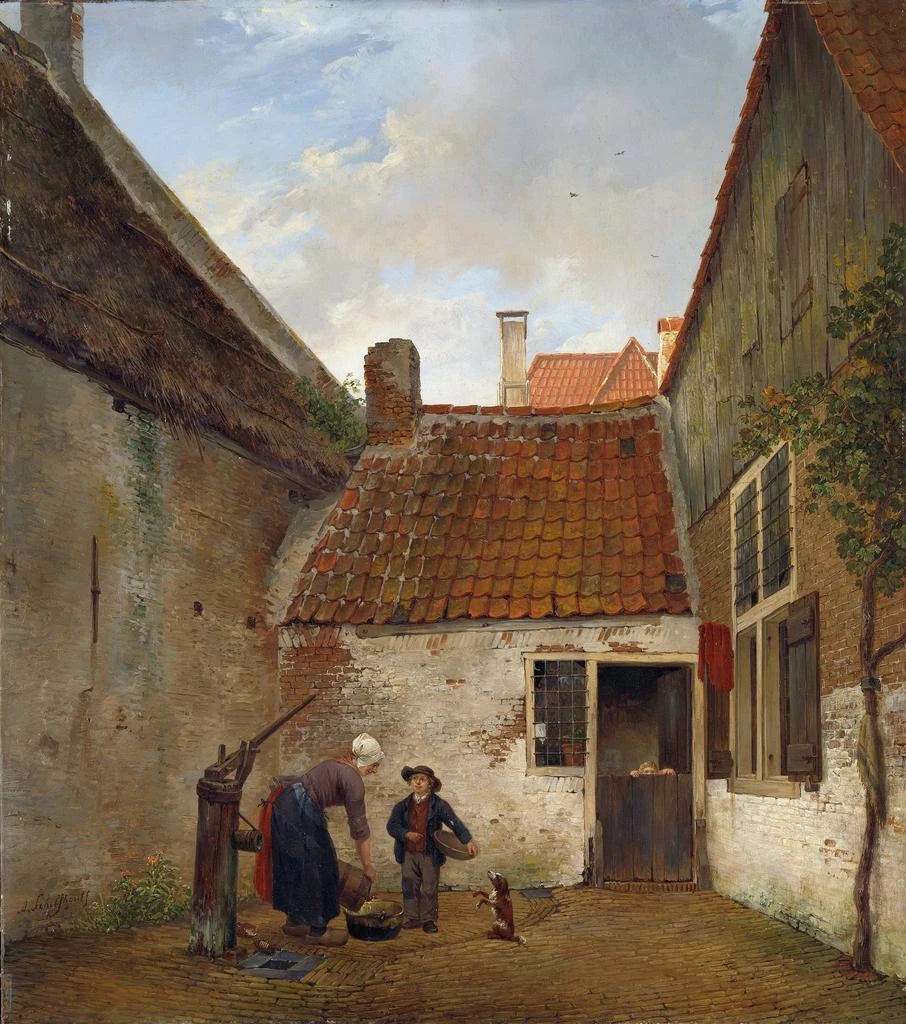 La impresión artística "Cour intérieure" de Andreas Schelfhout invita a una inmersión en un mundo donde la naturaleza y la arquitectura se entrelazan con una armonía delicada. Pintor neerlandés del siglo XIX, Schelfhout supo capturar la esencia de los paisajes y las escenas de la vida cotidiana con una sensibilidad que trasciende el tiempo. En esta obra, el espectador es recibido por un patio bañado en luz, donde los juegos de sombra y luz revelan la magia de un instante congelado. La escena, impregnada de serenidad, evoca una atmósfera de tranquilidad, propicia para la contemplación y la evasión. Estilo y singularidad de la obra El estilo de Schelfhout se caracteriza por una finura de ejecución y una atención minuciosa a los detalles. En "Cour intérieure", los colores se entrelazan con una suavidad que recuerda a los impresionistas, manteniendo una precisión realista propia de su época. Los edificios, con sus fachadas delicadamente representadas, parecen contar una historia, mientras que la vegetación exuberante que los rodea aporta un toque de vida y movimiento. El artista juega hábilmente con la luz, creando contrastes impactantes que animan la escena. Esta obra se distingue por su capacidad para evocar emociones profundas, transformando un simple espacio en un lugar de ensueño y contemplación. El artista y su influencia Andreas Schelfhout, nacido en 1787, es una figura emblemática del movimiento romántico neerlandés. Su obra está marcada por una pasión por la naturaleza y una fascinación por los paisajes urbanos. Influenciado por los maestros flamencos y los pintores de la escuela holandesa, supo desarrollar un estilo propio, combinando realismo y poesía. Su capacidad para capturar la luz y las atmósferas inspiró a numerosos artistas de su tiempo, y su legado perdura aún hoy. Schelfhout es considerado un pionero en el arte de representar la naturaleza y la arquitectura, y su influencia se refleja en las obras de muchos pintores contemporáneos que buscan traducir la belleza del mundo que los rodea. Una decoración mural de excepción firmada por Artem Legrand La impresión artística de "Cour intérieure - Andreas Schelfhout" por Artem Legrand se presenta como