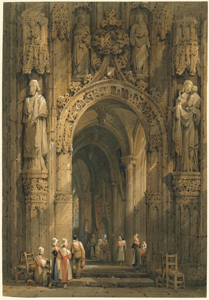 Samuel Prout, pintor y acuarelista británico del siglo XIX, es reconocido por sus representaciones de paisajes urbanos y de interiores arquitectónicos. Su estilo romántico se caracteriza por una atención minuciosa a los detalles y una capacidad para capturar la esencia de los lugares. Prout fue influenciado por los viajes por Europa, donde estudió las grandes catedrales y monumentos históricos. Su obra contribuyó a la popularización de la acuarela como medio de expresión artística, y se le considera un pionero en este campo, dejando un legado duradero en el arte británico.