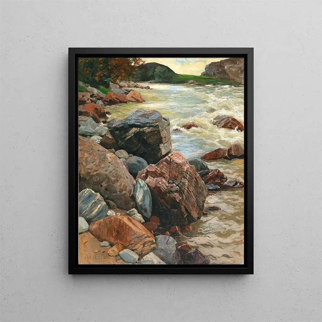 La obra de Alexander Koester se distingue por su enfoque naturalista, donde cada detalle es cuidadosamente observado y restituido. La luz juega un papel central en "L'Isarco en Tirol del Sur", iluminando los reflejos del agua y las tonalidades del follaje circundante. Los colores, a la vez suaves y vibrantes, crean una atmósfera casi palpable, donde el espectador puede casi sentir el aliento fresco de la brisa alpina. Koester, maestro en la pintura de paisajes, logra evocar emociones profundas a través de escenas de la naturaleza, transformando una simple representación en una experiencia inmersiva. Este cuadro, por su composición armoniosa y su atención a los detalles, ofrece una ventana a un mundo donde la tranquilidad reina en su máximo esplendor, permitiendo a cada uno soñar y escapar.