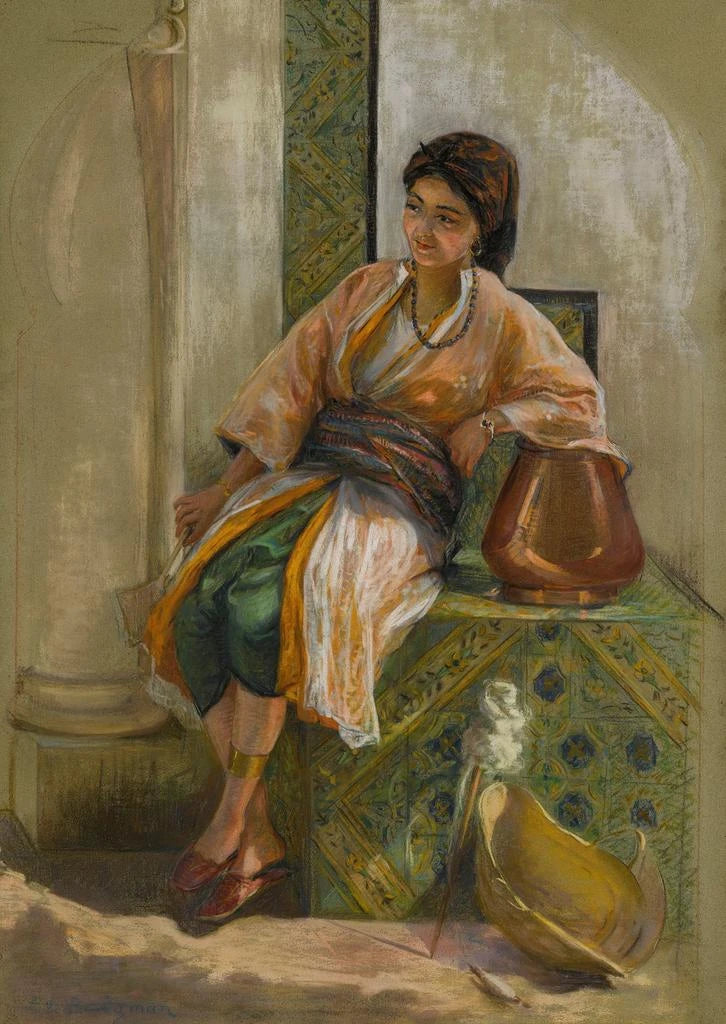 Impresión artística | Joven con abanico - Frederick Arthur Bridgman
