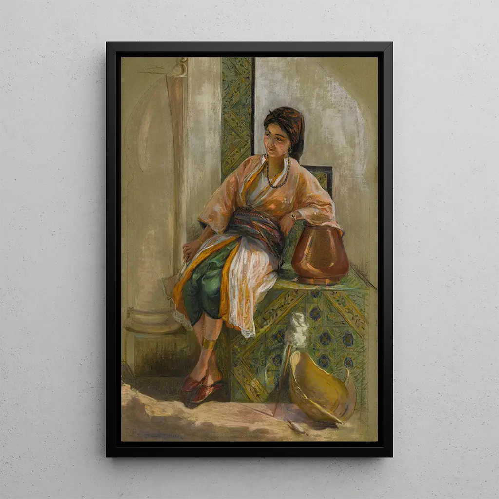 La impresión artística "Jeune fille à l'éventail" de Frederick Arthur Bridgman est une œuvre qui incarne la grâce et la beauté féminine. La composition met en scène une jeune femme, élégamment vêtue, tenant un éventail délicat qui semble capter la lumière. Les couleurs douces et pastel, associées à des touches plus vives, créent une atmosphère légère et rêveuse. La technique de Bridgman, mêlant réalisme et impressionnisme, permet de ressentir la texture des vêtements et la délicatesse des traits de son modèle, offrant ainsi une immersion dans un moment de poésie visuelle. Frederick Arthur Bridgman : un maître de l'orientalisme Frederick Arthur Bridgman, actif à la fin du XIXe siècle, est un peintre américain dont l'œuvre est profondément marquée par l'orientalisme. Influencé par ses voyages en Afrique du Nord et au Moyen-Orient, il a su traduire la beauté des cultures orientales à travers ses toiles. Son style, qui allie des éléments réalistes à des touches impressionnistes, lui a permis de se démarquer dans le milieu artistique de son époque. "Jeune fille à l'éventail" est un parfait exemple de son talent à capturer l'essence de ses sujets tout en intégrant des éléments de rêve et de mystère, faisant de lui un acteur majeur de ce mouvement artistique. Une adquisición decorativa aux múltiples atouts La reproducción de "Jeune fille à l'éventail" est une pieza decorativa que saura enriquecer su espacio de vida. Ya sea en una sala de estar, un dormitorio o una oficina, este lienzo aporta un toque de elegancia y refinamiento. Su calidad de reproducción asegura una fidelidad a los detalles y a los colores de la obra original, permitiendo disfrutar plenamente de su encanto. Con su atractivo estético, este cuadro se convierte en un elemento central de su decoración, despertando la admiración de sus invitados e invitando a la ensoñación.