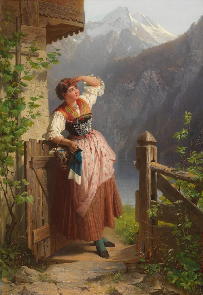 En "Jeune fille guettant", Peter Baumgartner captura un momento fugaz, donde la inocencia de la infancia se mezcla con una curiosidad palpable. La luz suave que ilumina el rostro de la joven crea una atmósfera íntima, mientras que los colores pastel añaden un toque de ensueño a la composición. La técnica delicada de Baumgartner, combinando acuarela y óleo, da vida a esta escena, donde cada detalle, desde la mirada atenta de la niña hasta la textura de la ropa, contribuye a la emoción transmitida por la obra. Este cuadro invita a la contemplación y a la nostalgia, recordando los momentos valiosos de la infancia.