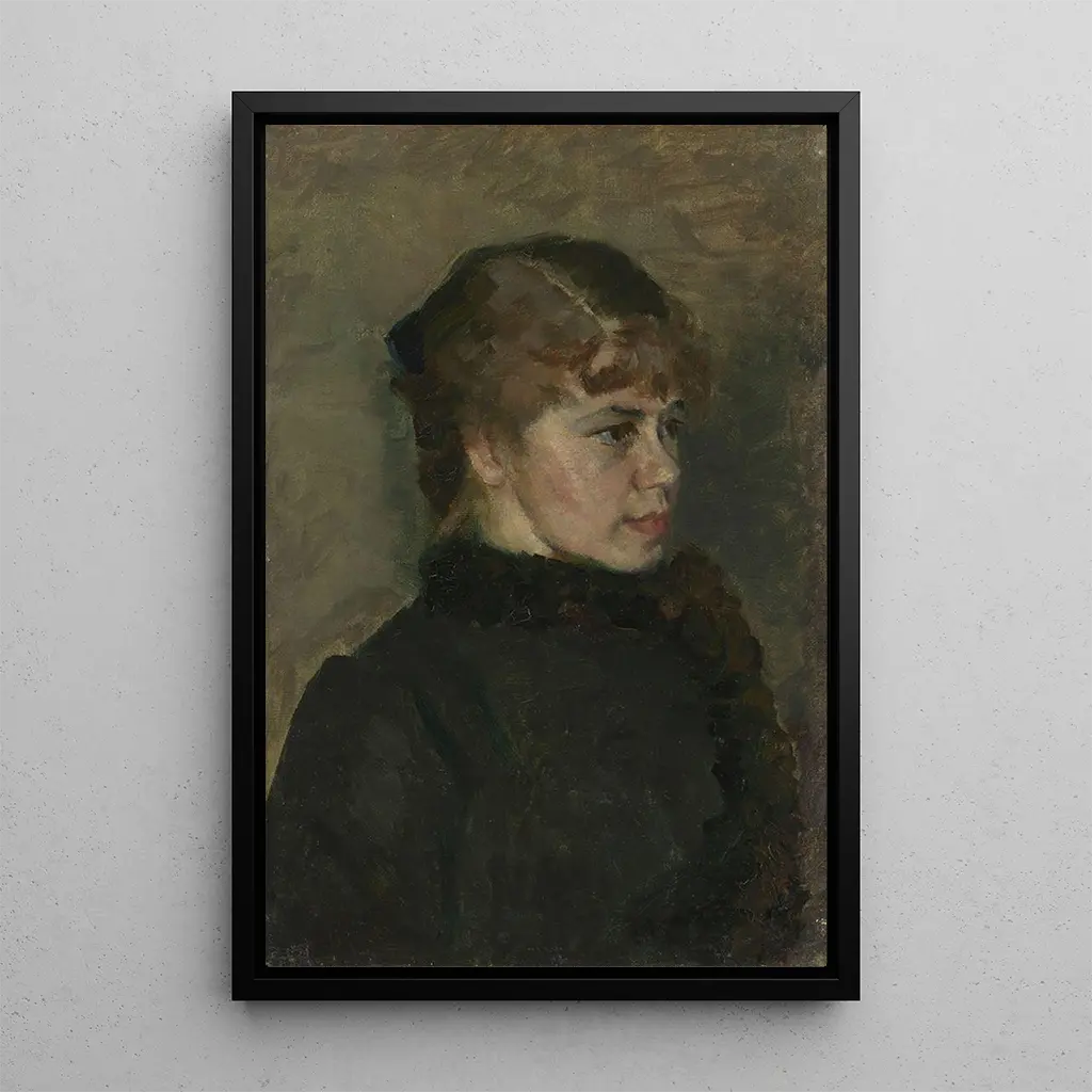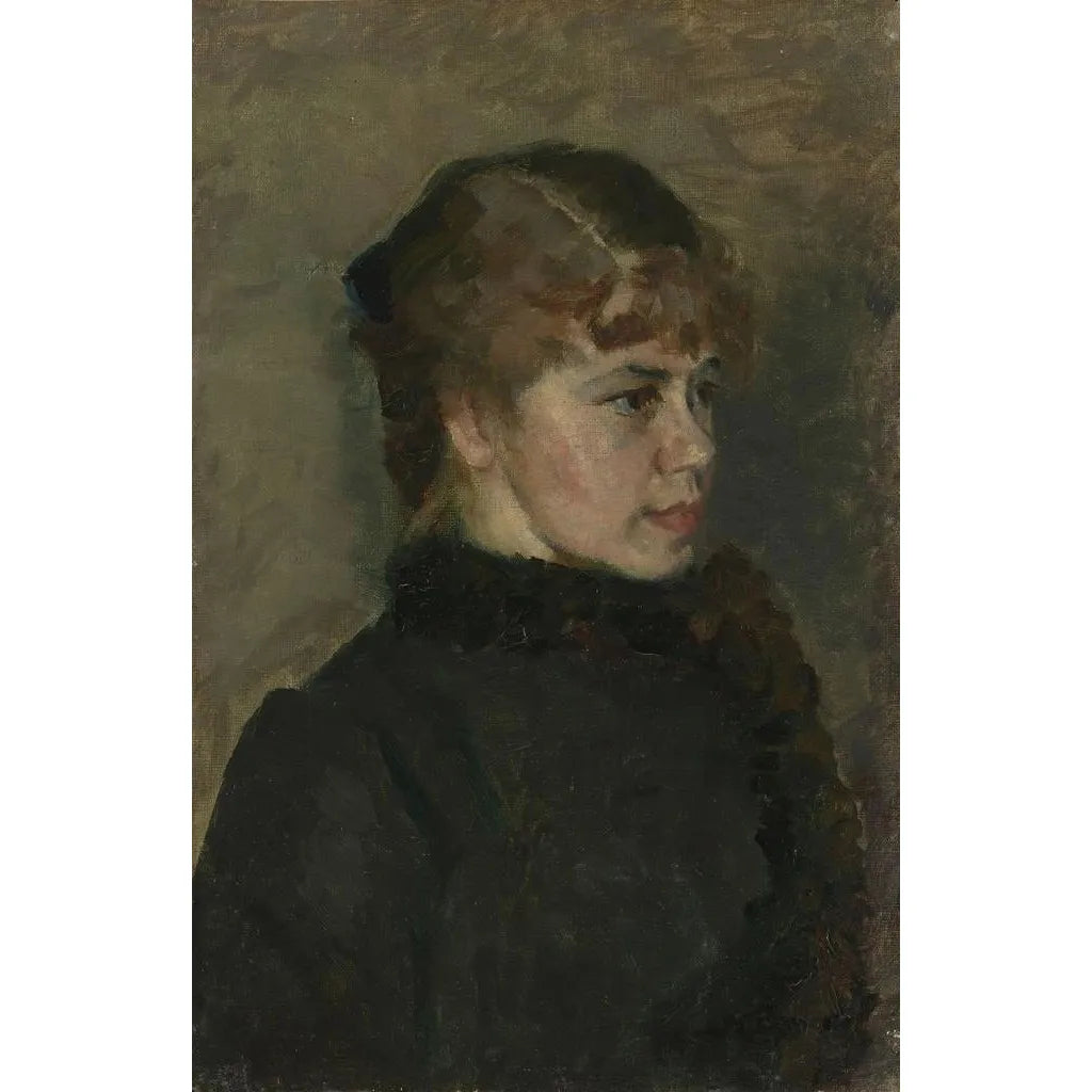 En esta obra cautivadora, Christian Krohg nos presenta una joven mujer con una mirada pensativa, envuelta en una luz suave y cálida. La composición, a la vez simple y evocadora, resalta los rasgos delicados de su rostro y la fluidez de su cabello. Los colores pastel, mezclando matices de rosa y azul, crean una atmósfera íntima, casi soñadora. La técnica de pintura al óleo, dominada con finura, añade una textura rica que atrae la mirada e invita a la contemplación. Este cuadro, reflejo auténtico de la sensibilidad del artista, nos sumerge en un momento de delicadeza y poesía.