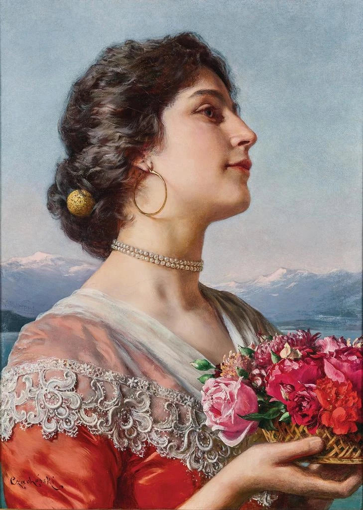 Władysław Czachórski, activo en el siglo XIX, es un pintor polaco cuyas obras reflejan las preocupaciones sociales y estéticas de su época. Criado en un contexto donde el realismo y el romanticismo coexistían, supo aprovechar estas influencias para crear retratos llenos de sensibilidad. Su trabajo suele destacar figuras femeninas, símbolos de belleza y fragilidad. Inspirándose en la vida cotidiana y las tradiciones polacas, Czachórski logró inmortalizar momentos de ternura y sencillez, haciendo de Jeune vendeuse de fleurs una obra emblemática de su repertorio.