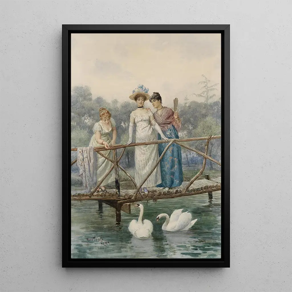 Cuadro Jóvenes mujeres alimentando cisnes - Mario Spinetti | Impresión artística