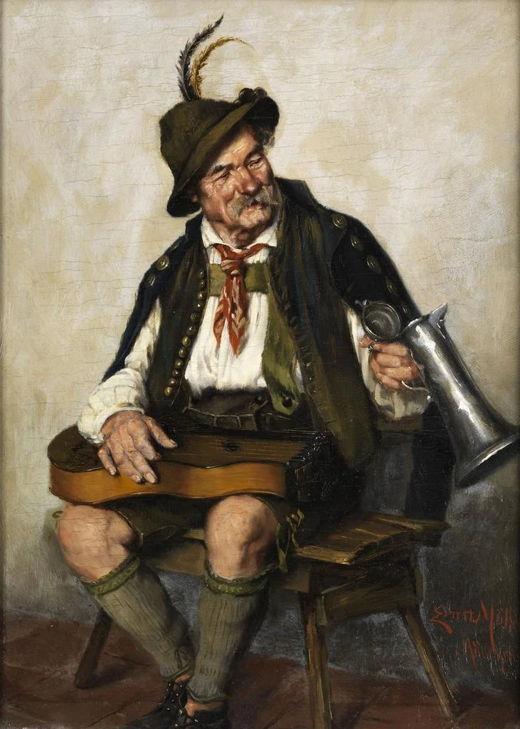 Cuadro Jugador de cítara con jarra de cerveza - Ernst Müller | Impresión artística