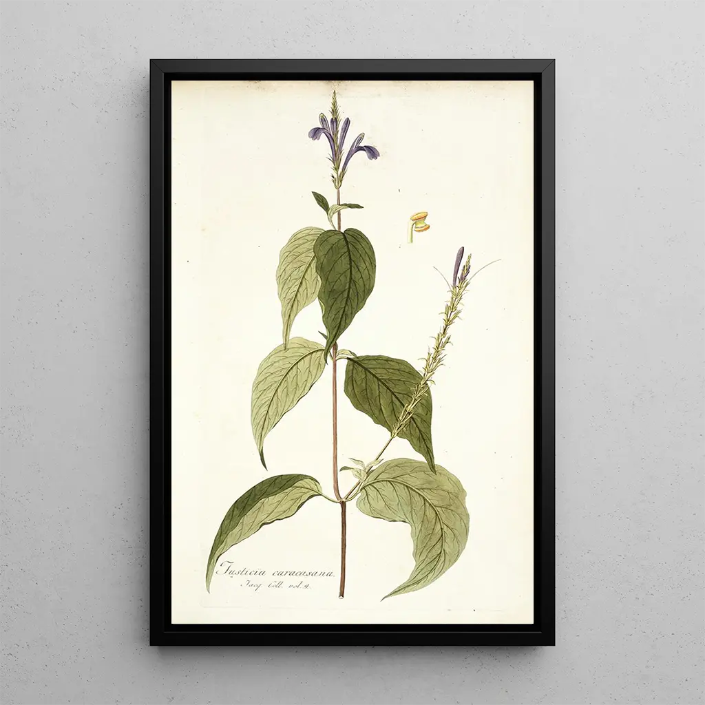 La impresión artística de Justicia caracasana, obra de Nikolaus Joseph Freiherr von Jacquin, nos transporta a un universo exuberante donde la naturaleza florece. Este cuadro se caracteriza por sus tonos vibrantes y sus formas delicadas, representando fielmente esta planta tropical. Las tonalidades de verde profundo y violeta vibrante se combinan para crear una composición armoniosa y cautivadora. La técnica de acuarela, dominada por Jacquin, permite captar la luz y la textura con una precisión notable, invitando al espectador a apreciar la belleza efímera de la flora.