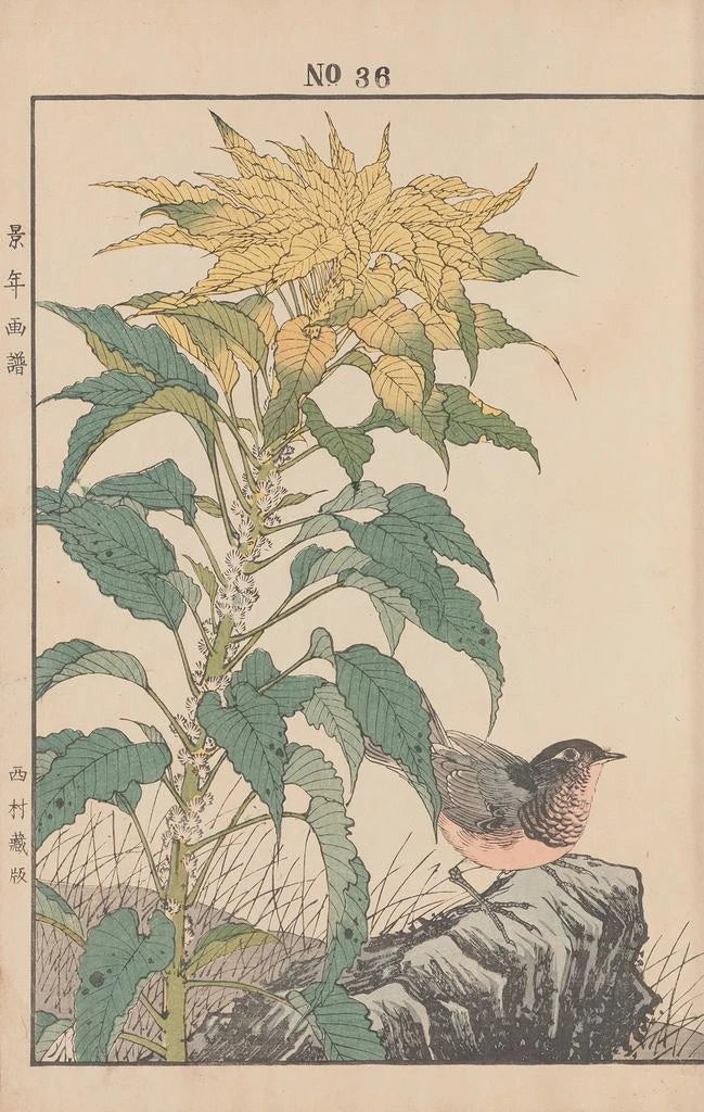 La impresión artística de Keinen kach gafu Pl039 nos sumerge en un universo donde la naturaleza se ilumina con una delicadeza inigualable. Los colores suaves y los detalles minuciosos de las flores y los pájaros crean una atmósfera tranquilizadora, casi meditativa. La técnica de la impresión en papel, típica de la época Edo, permite al artista capturar la belleza efímera de la flora y la fauna japonesas. Cada elemento parece vibrar bajo la mirada, invitando al espectador a una contemplación silenciosa y respetuosa de la naturaleza.