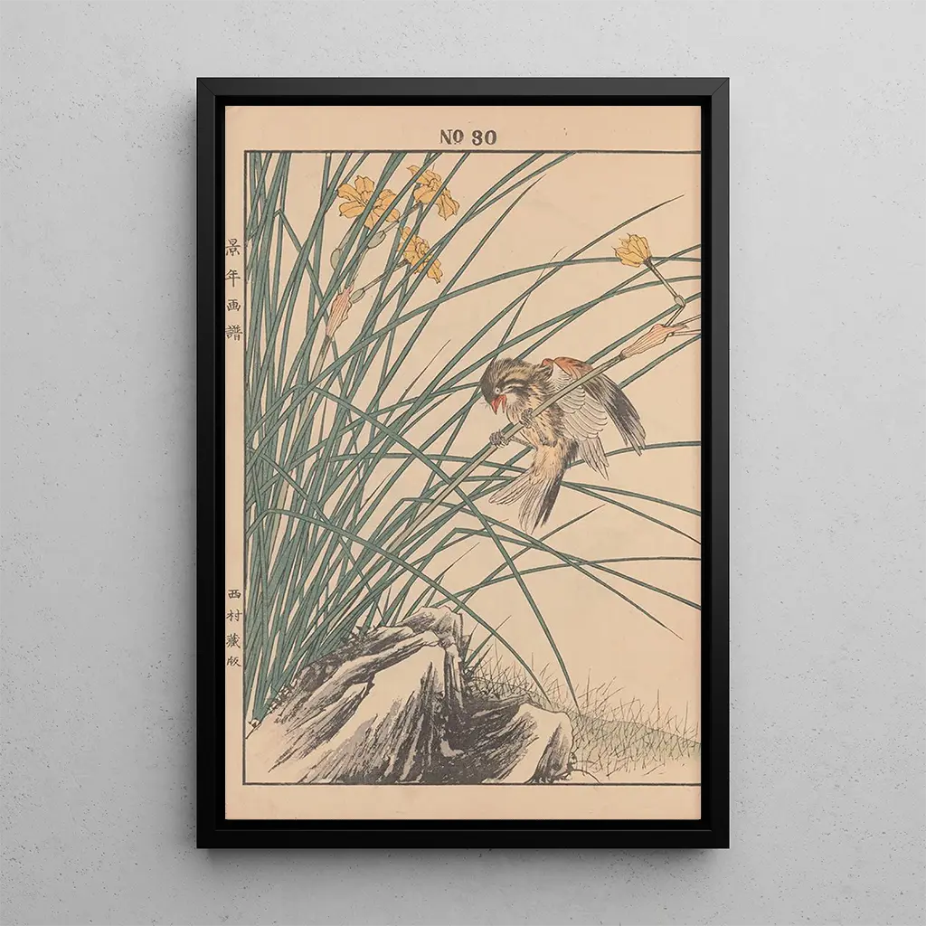 Imao Keinen, activo a finales del siglo XIX y principios del XX, es reconocido como uno de los grandes maestros de la impresión artística japonesa. Su obra se inscribe en el movimiento ukiyo-e, que se centra en la belleza efímera de la vida cotidiana y de la naturaleza. Influenciado por las tradiciones artísticas de su país, Keinen supo combinar técnicas antiguas e innovaciones, creando obras que capturan la esencia de Japón. Sus representaciones florales, como las de Keinen kach gafu, testimonian su habilidad para fusionar estética y técnica, convirtiéndolo en una figura imprescindible del arte nipón.