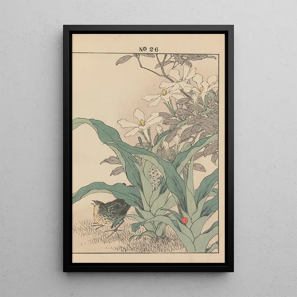 En la impresión artística Keinen kach gafu Pl116, el artista Imao Keinen nos sumerge en un universo donde la naturaleza florece con una delicadeza infinita. Los colores vibrantes, que van desde verdes exuberantes hasta rosas delicados, crean una atmósfera serena y tranquilizadora. La técnica de la impresión artística en papel, típica de la época Edo, permite capturar las sutilezas de cada flor y hoja. Cada detalle está cuidadosamente representado, invitando al espectador a una contemplación profunda de la belleza efímera de la naturaleza. Este cuadro evoca una armonía perfecta entre el hombre y su entorno, una invitación a ralentizar y apreciar el mundo que nos rodea.