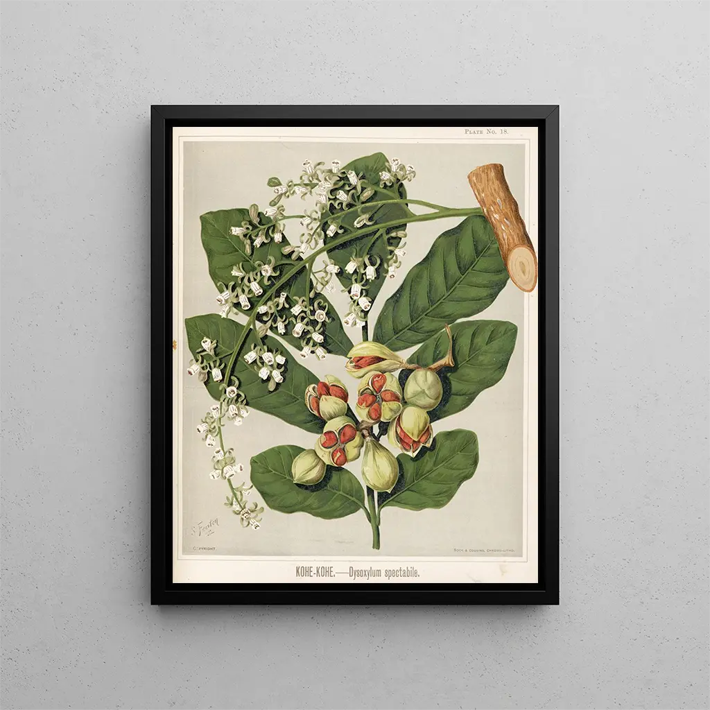En esta obra, Sarah Featon destaca el KoheKohe, o Dysoxylum spectabile, un majestuoso árbol de Nueva Zelanda. Con una atención al detalle notable, Featon captura la belleza de este árbol y sus flores espectaculares. Su estilo artístico, que combina precisión y sensibilidad, rinde homenaje a la riqueza de la flora neozelandesa. Las ilustraciones de Featon no solo son representaciones botánicas, sino también obras de arte que enriquecen nuestros interiores modernos. Aportan un toque de exotismo y naturaleza, integrándose armoniosamente en diversos estilos de decoración. Estas obras son ideales para quienes desean crear un ambiente relajante e inspirador. Descubra esta ilustración en Artem Legrand y déjese seducir por la magia de la flora neozelandesa.