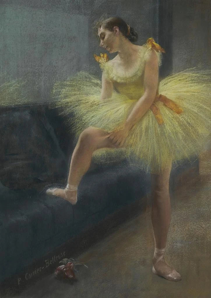 Pierre Carrier-Belleuse, pintor y escultor del siglo XIX, es reconocido por su capacidad para capturar la esencia del ballet y de la danza. Influenciado por las corrientes artísticas de su época, desarrolla un estilo único que combina precisión y expresividad. Su carrera está marcada por una serie de obras emblemáticas que reflejan la efervescencia cultural de París, donde el ballet experimenta un auge sin precedentes. Carrier-Belleuse, por su talento, contribuye a inmortalizar momentos fugaces de belleza, convirtiéndose en una figura importante del arte de su tiempo.