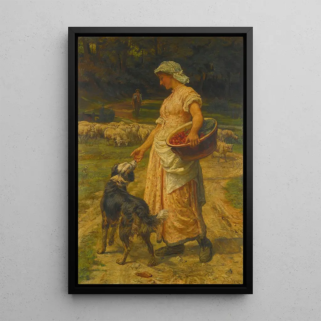 Frederick Morgan, activo a finales del siglo XIX y principios del XX, es reconocido por sus representaciones idealizadas de la vida rural y de las jóvenes mujeres. Influenciado por el movimiento prerrafaelista, se especializó en obras que evocan la nostalgia y la belleza de la naturaleza. Sus cuadros, a menudo impregnados de una atmósfera soñadora, capturan momentos de vida simples pero cargados de emoción. Morgan supo hacerse un lugar en el corazón de los amantes del arte gracias a su capacidad para combinar técnica refinada y sensibilidad. La bergère es una de sus obras emblemáticas, ilustrando perfectamente su estilo y su apego a temas bucólicos.