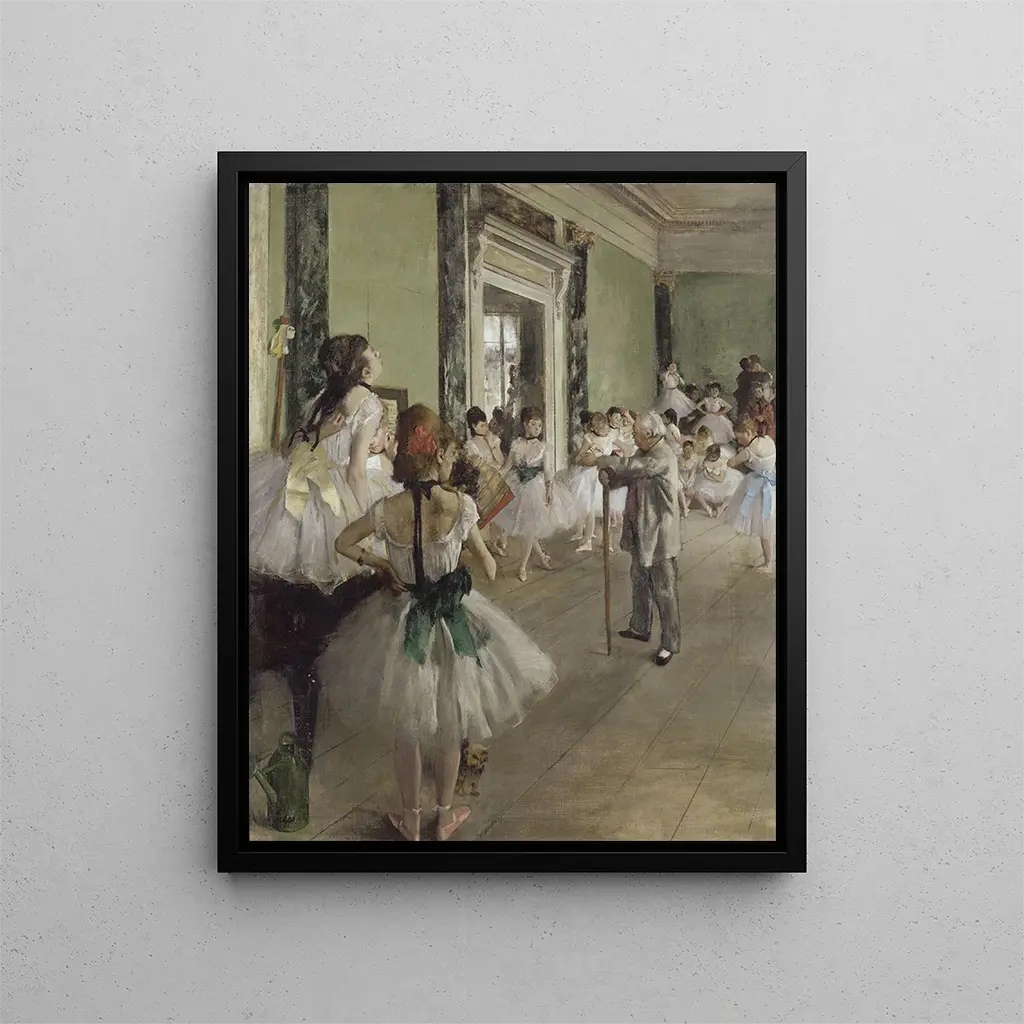 La clase de ballet de Edgar Degas es una obra emblemática que captura la esencia misma de la danza a través del prisma del impresionismo. Este cuadro, pintado a finales del siglo XIX, nos sumerge en el fascinante universo de las bailarinas, combinando gracia y rigor. La escena se desarrolla en una sala de baile, donde jóvenes, vestidas con tutús, practican bajo la mirada atenta de su profesora. Degas, como maestro de la observación, logra inmortalizar un instante fugaz, revelando no solo la belleza del movimiento, sino también la intimidad de un momento de trabajo y disciplina. La suave luz que filtra a través de las ventanas crea una atmósfera casi etérea, invitando al espectador a sumergirse en este mundo delicado y exigente.