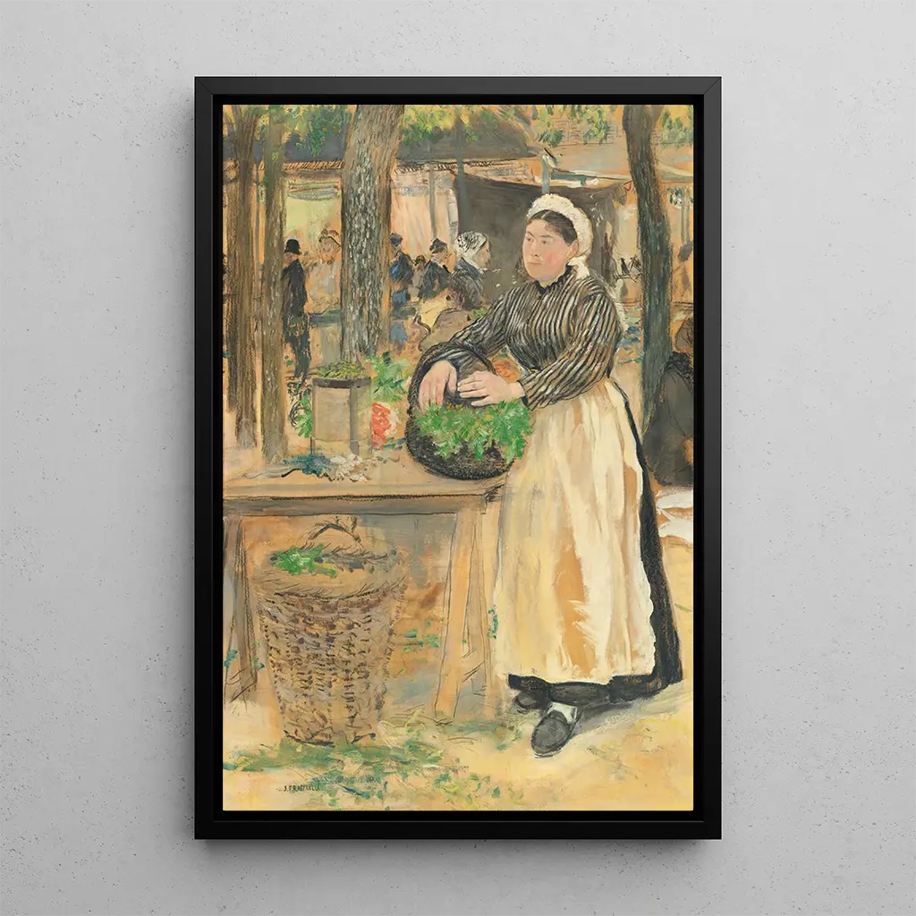 En esta impresión artística de La Cuisinière en el mercado, el artista Jean François Raffaëlli captura con brillantez la esencia de un momento cotidiano. La composición, centrada en una mujer en plena actividad, evoca una atmósfera cálida y viva. Los colores terrosos, mezclados con toques de luz, dan vida a la tela, mientras que la técnica impresionista de Raffaëlli, con sus pinceladas rápidas, crea una dinámica palpable. La obra invita al espectador a sumergirse en el universo de los mercados parisinos, donde los aromas y los ruidos se mezclan con la vista de esta cocinera atareada, símbolo de un saber hacer tradicional.
