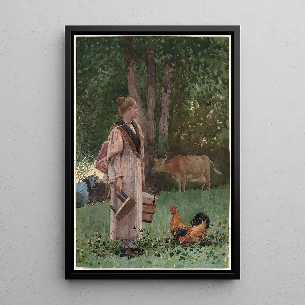 La laitière : una oda a la sencillez rural En "La laitière", Winslow Homer representa una escena bucólica impregnada de sencillez y tranquilidad. La composición destaca a una mujer, concentrada en su tarea, rodeada de un paisaje verde. Los colores suaves y naturales, que van desde verdes hasta marrones, crean una atmósfera cálida y acogedora. La técnica de la acuarela, utilizada con maestría, permite reproducir las texturas y los juegos de luz, acentuando la belleza del momento. Este cuadro evoca una conexión profunda con la tierra y el trabajo manual, invitando al espectador a apreciar los placeres simples de la vida. Winslow Homer : el cronista de las escenas de la vida estadounidense Winslow Homer, figura principal del arte estadounidense del siglo XIX, es reconocido por su capacidad para capturar la vida cotidiana con gran autenticidad. Nacido en Boston, comenzó su carrera como ilustrador antes de dedicarse a la pintura. Sus obras, a menudo inspiradas en la naturaleza y la vida rural, reflejan los desafíos y las alegrías de la existencia humana. "La laitière" se inscribe en un período en el que Homer explora los temas de la ruralidad y la sencillez, ofreciendo una mirada tierna al mundo que lo rodea. Su influencia perdura, y sus cuadros continúan inspirando a generaciones de artistas. Una adquisición decorativa con múltiples ventajas La impresión artística de "La laitière" es una elección perfecta para embellecer su interior, ya sea una sala de estar, una oficina o un dormitorio. La calidad de impresión asegura una fidelidad excepcional a los detalles y colores de la obra original. Este cuadro aporta un ambiente cálido y relajante, al tiempo que evoca temas de trabajo y naturaleza. Con su atractivo estético, esta tela no solo es una obra de arte, sino que también se convierte en un elemento decorativo que enriquece su espacio vital y suscita la admiración de sus invitados.