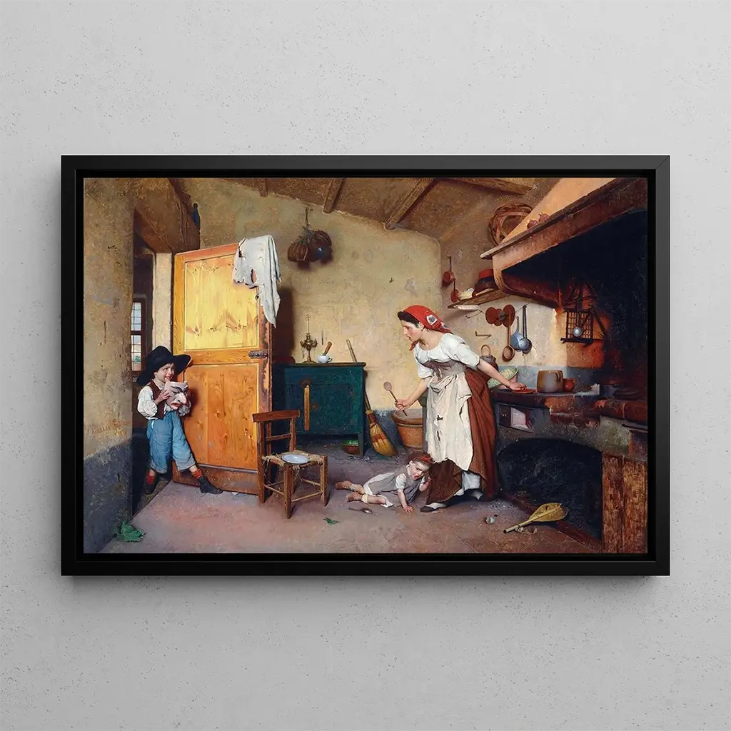 La impresión artística de La Maschera nos sumerge en un universo misterioso y fascinante, donde las máscaras evocan historias antiguas y tradiciones vivas. Gaetano Chierici, con su paleta de colores ricos y sus detalles minuciosos, logra capturar la esencia misma del carnaval y de sus celebraciones. Los rostros enmascarados, con expresiones variadas, parecen contar relatos de alegría, misterio y festividad. Este lienzo, vibrante de vida, invita al espectador a explorar las emociones ocultas detrás de cada máscara, haciendo de esta obra un reflejo auténtico del alma humana.