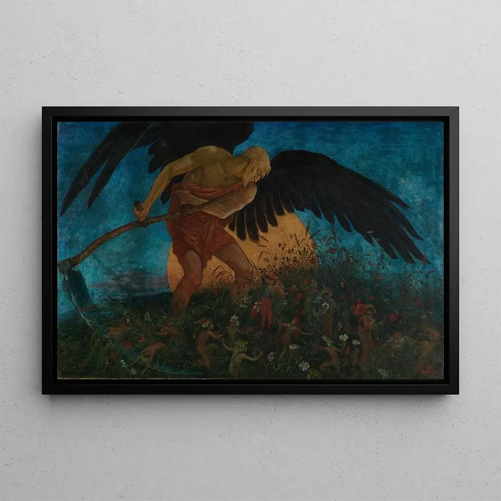 La Mort du Faucheur : una obra evocadora de la naturaleza humana La Mort du Faucheur, obra emblemática de Walter Crane, representa una escena conmovedora donde la muerte, personificada por un segador, está a punto de cosechar las almas. Los colores oscuros y las tonalidades terrosas crean una atmósfera melancólica, mientras que la luz atraviesa las sombras, revelando la belleza trágica de la vida. La técnica de Crane, que combina detalles minuciosos con cierta abstracción, invita al espectador a una reflexión profunda sobre la mortalidad y el paso del tiempo. Cada elemento de la composición parece cargado de significado, haciendo que esta impresión artística sea cautivadora y atemporal. Walter Crane : un maestro del movimiento Arts & Crafts Walter Crane, figura principal del movimiento Arts & Crafts, supo fusionar arte y artesanía a lo largo de su carrera. Nacido en 1845, fue influenciado por los prerrafaelitas y las ideas de John Ruskin, promoviendo un retorno a la artesanía y a la belleza natural. Su trabajo, a menudo centrado en temas mitológicos y sociales, marcó el fin del siglo XIX y el comienzo del siglo XX. La impresión artística de La Mort du Faucheur ilustra perfectamente su estilo único, combinando una narrativa visual rica con una estética refinada. Crane también fue un ferviente defensor de la educación artística, contribuyendo a moldear la percepción del arte en la sociedad de su época. Una adquisición decorativa con múltiples ventajas Optar por la impresión artística de La Mort du Faucheur es elegir un lienzo que enriquecerá su interior con un toque de reflexión y elegancia. Ya sea en una sala de estar, una oficina o un dormitorio, esta obra se integra armoniosamente en diversos estilos de decoración, aportando profundidad visual y una atmósfera contemplativa. La calidad de la impresión artística garantiza fidelidad a los detalles y colores originales, además de ofrecer un atractivo estético indudable. Esta obra se convierte así en un punto focal de su espacio, despertando admiración y conversaciones en torno a su mensaje conmovedor sobre la vida y la muerte.