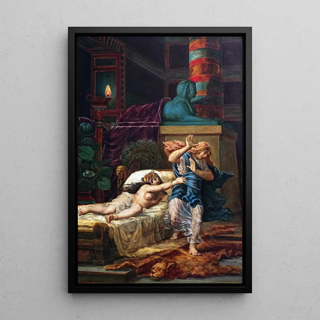 En esta obra impactante, Jean-Baptiste Cariven captura un momento clave de la Biblia donde la mujer de Potifar intenta seducir a José. La composición se caracteriza por una intensidad dramática, donde los gestos y las expresiones de los personajes revelan una lucha entre deseo y virtud. Los colores cálidos, como los rojos y los dorados, contrastan con las sombras, creando una atmósfera de tensión y conflicto. La técnica de Cariven, que combina realismo y elementos teatrales, invita al espectador a reflexionar sobre los temas de moralidad y tentación, ofreciendo a la vez una visión estética rica y evocadora.