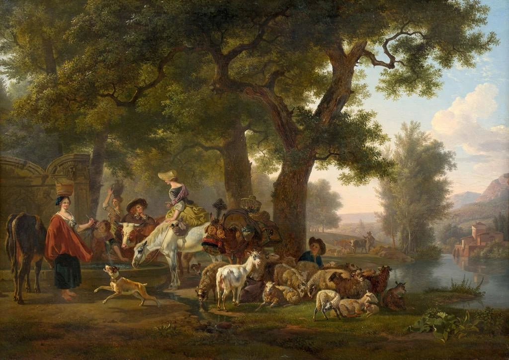 En "La halte", Jean-Louis Demarne nos sumerge en un momento de tranquilidad, donde el tiempo parece suspendido. Esta obra representa una escena bucólica, donde viajeros hacen una pausa en un entorno natural apacible. Los colores suaves y las tonalidades delicadas de la luz crean una atmósfera serena, invitando a la contemplación. La técnica de Demarne, que utiliza toques de pincel ligeros y fluidos, da vida a la naturaleza circundante, haciendo que cada elemento, desde los árboles hasta los personajes, tenga una gran expresividad. Este lienzo evoca un sentimiento de paz y sencillez, perfecto para quienes buscan un ambiente relajante.