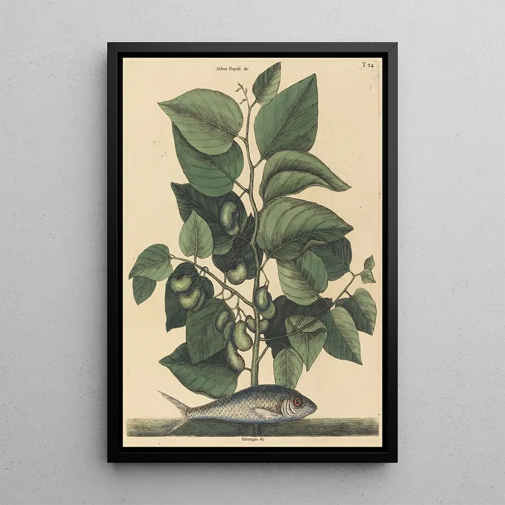 La reproducción de La Sardine Argentina carolina de Mark Catesby nos sumerge en el fascinante mundo de la vida marina. Esta obra, realizada con una precisión notable, destaca los detalles delicados de la sardina, sus escamas brillantes y sus matices de azul y plata. La técnica de acuarela utilizada por Catesby aporta ligereza y transparencia a la imagen, evocando la fluidez del agua. La atmósfera general del lienzo es a la vez tranquilizadora y vibrante, invitando al espectador a explorar las profundidades marinas y a apreciar la belleza de la naturaleza.