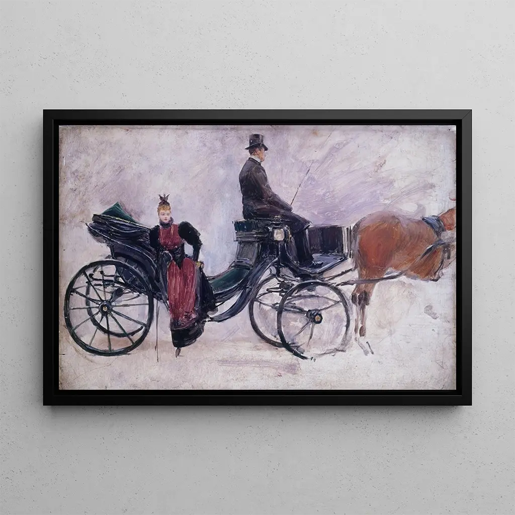 La impresión artística de La Victoria, realizada por Jean Béraud, captura la esencia vibrante de la vida parisina a finales del siglo XIX. Este lienzo, rico en colores y movimientos, representa una escena de café animada donde los personajes, elegantemente vestidos, parecen cobrar vida bajo la luz dorada. Los detalles refinados de los trajes y la atmósfera acogedora que emana de ella testimonian el talento de Béraud para inmortalizar los momentos de la vida cotidiana. La composición dinámica de la obra, con sus líneas fluidas y destellos de color, invita al espectador a sumergirse en la efervescencia de la capital francesa.